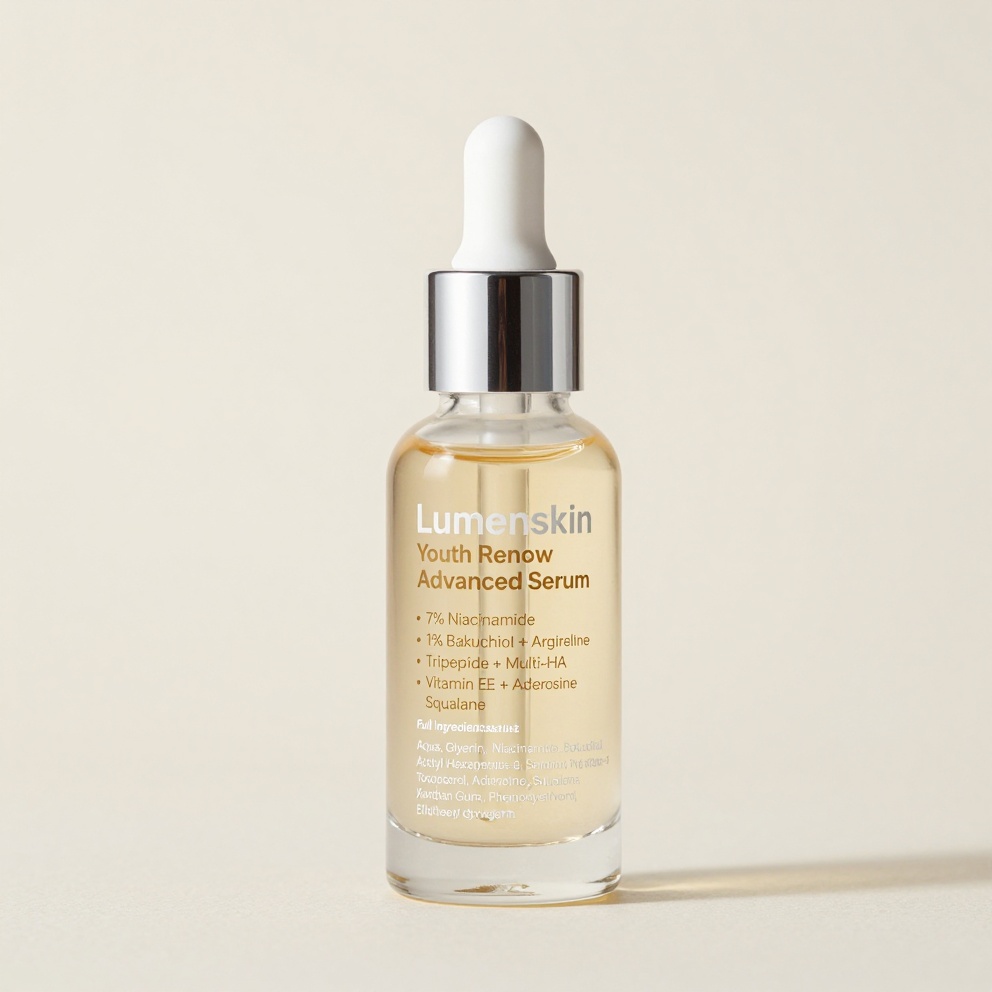 LumenSkin Youth Renew Advanced Serum delivers targeted anti-aging benefits with next-level actives to visibly firm, plump, reduce fine lines, and boost elasticity. This lightweight yet potent formula supports collagen production and skin renewal for a youthful, radiant complexion.
